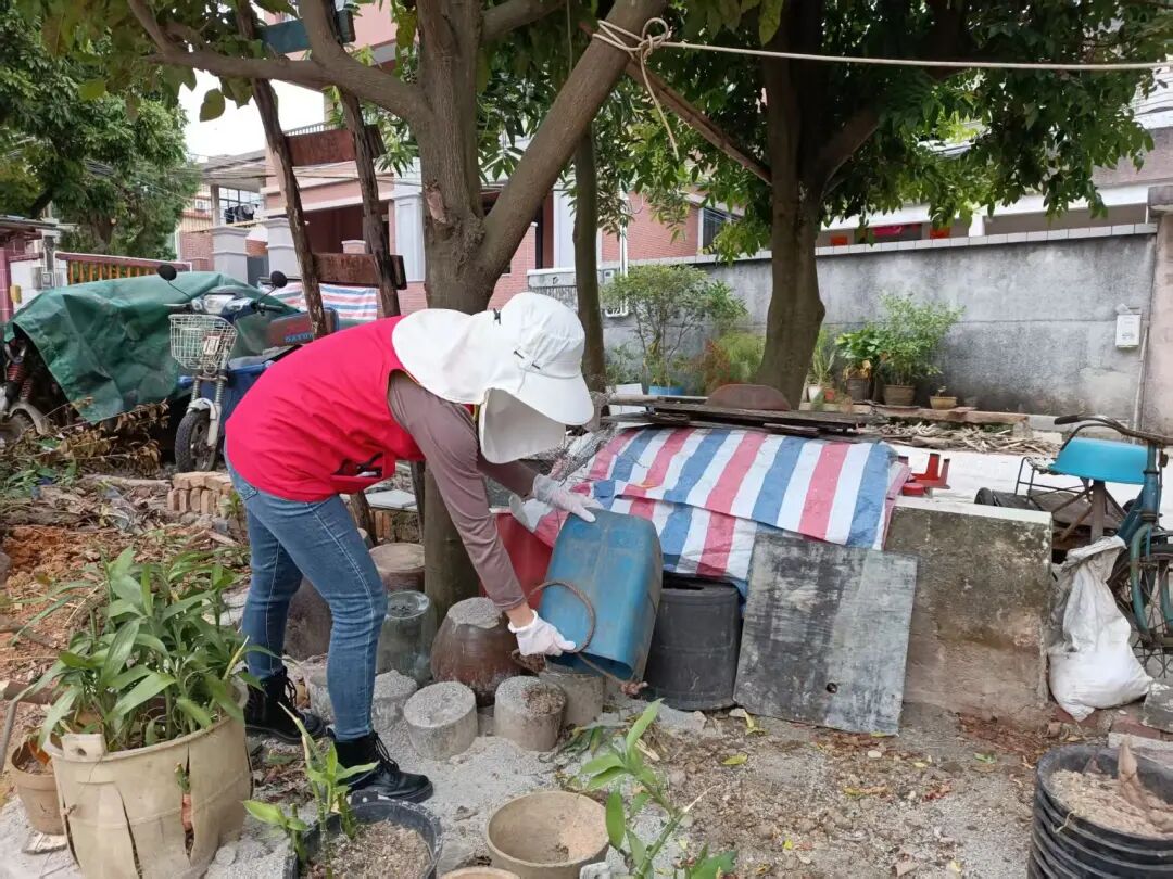愛國衛(wèi)生運動同步推進,為“兩熱”防控打下堅實基礎(chǔ)。結(jié)合“百千萬工程”人居環(huán)境整治要求,翠亨新區(qū)(南朗街道)掀起全員參與的環(huán)境整治熱潮:黨員干部率先帶頭沖鋒,志愿者與村(居)民積極響應跟上,大家齊心協(xié)力清理衛(wèi)生黑點、清運各類垃圾、清拆亂搭亂建,還對公共區(qū)域的積水進行“拉網(wǎng)式”排查清理。通過清理雜亂的角落和積水的盆栽,轄區(qū)巷道變得整潔、院落變得清爽,環(huán)境面貌大為改觀,從源頭徹底鏟除了蚊蟲孳生的“溫床”。